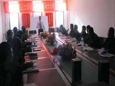 2011年11月5日至11月18日,由集团公司总经理孙红玉、集团公司总监高平、鄂尔多斯分公司总教练徐亚军组成的培训师资力量,对鄂尔多斯分公司60名中层骨干进行了第八、九期的培训。此次培训,总公司事先制定了培训计划,每天上午理论培训,下午军事培训,晚上观看保安队规范管理和处置突发事件的教学光盘,为了提高骨干们对公司的认识和转变以企为家的思想,集团公司孙总把在北京经常学习培训的现代培训方式引进到此次培训中,孙总在每天晚上6点至8点钟播放了现代培训大师李强老师的《感恩》、《你是企业的主人》、《为自己工作》以及刘田老师的《制度第一,总裁第二》系列光盘,由孙总和高平总监现场解读。
