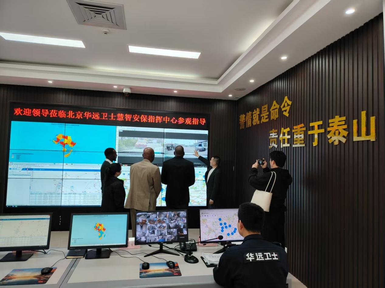 考察期间,Lugano Davis Mwamunyange(卢甘诺 戴维斯)一行先后参观了北京华远卫士安保集团企业文化展览室、慧智安保指挥中心及搏击俱乐部等,实地了解了北京华远卫士安保集团在安保服务、智慧安防、企业文化建设等方面的发展成果。参观过程中,客人对集团在专业化、智能化、国际化方面取得的成效给予高度评价。