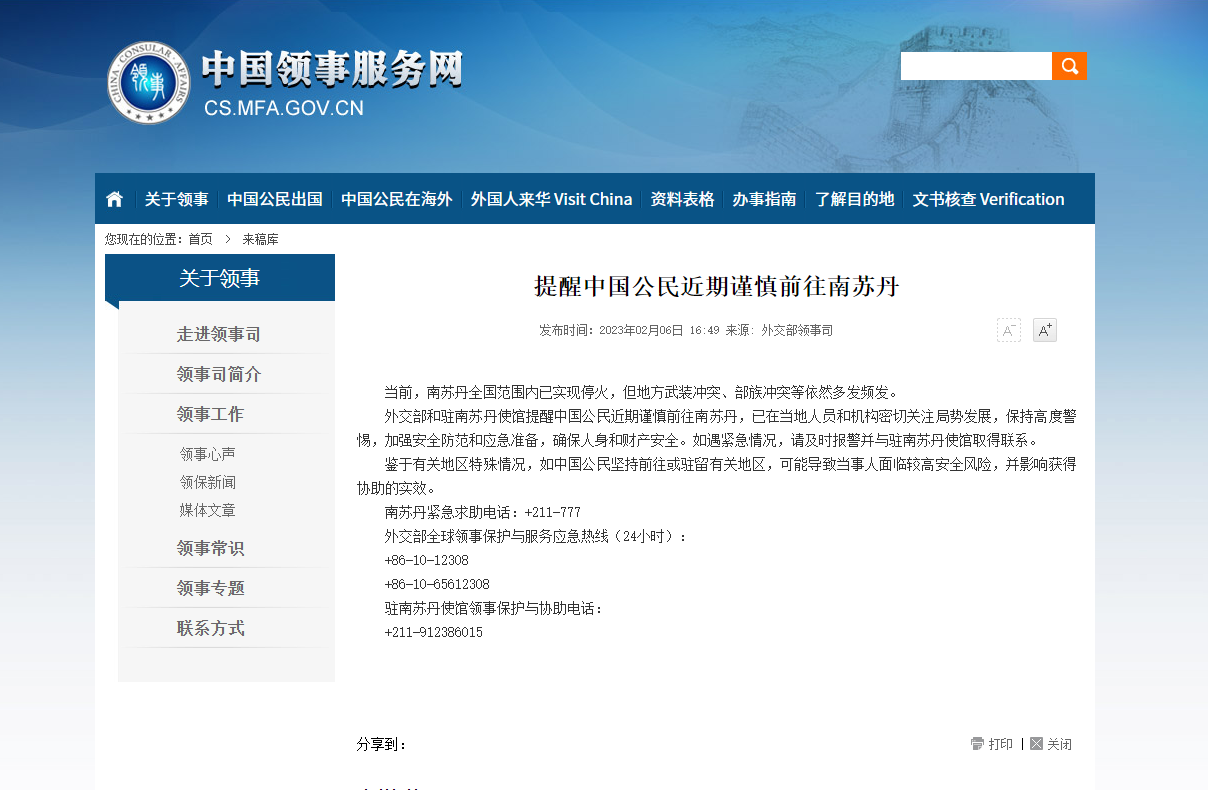 中资在南苏丹的公路基建项目、苏丹的石油开采项目面临供应链中断风险,建议暂缓敏感区域非必要作业。