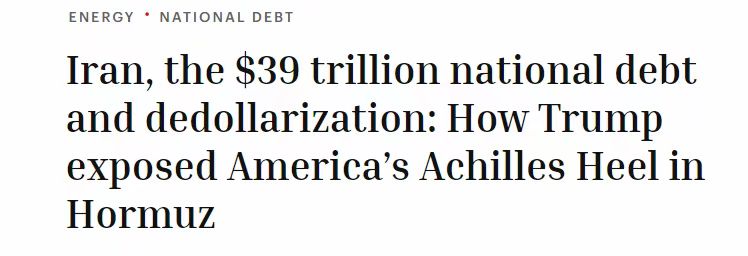 2026 年 3 月 24 日,美国《财富》刊文指出,中东军事冲突正严重冲击石油美元体系,加速全球去美元化。2026 年 3 月,中东军事冲突持续升级,美伊对峙向金融领域蔓延。伊朗公开将美相关金融机构、美债列为合法打击目标,叠加美国国债规模首次突破 39 万亿美元,地区安全风险直接冲击全球金融稳定。